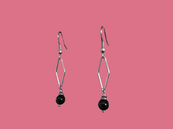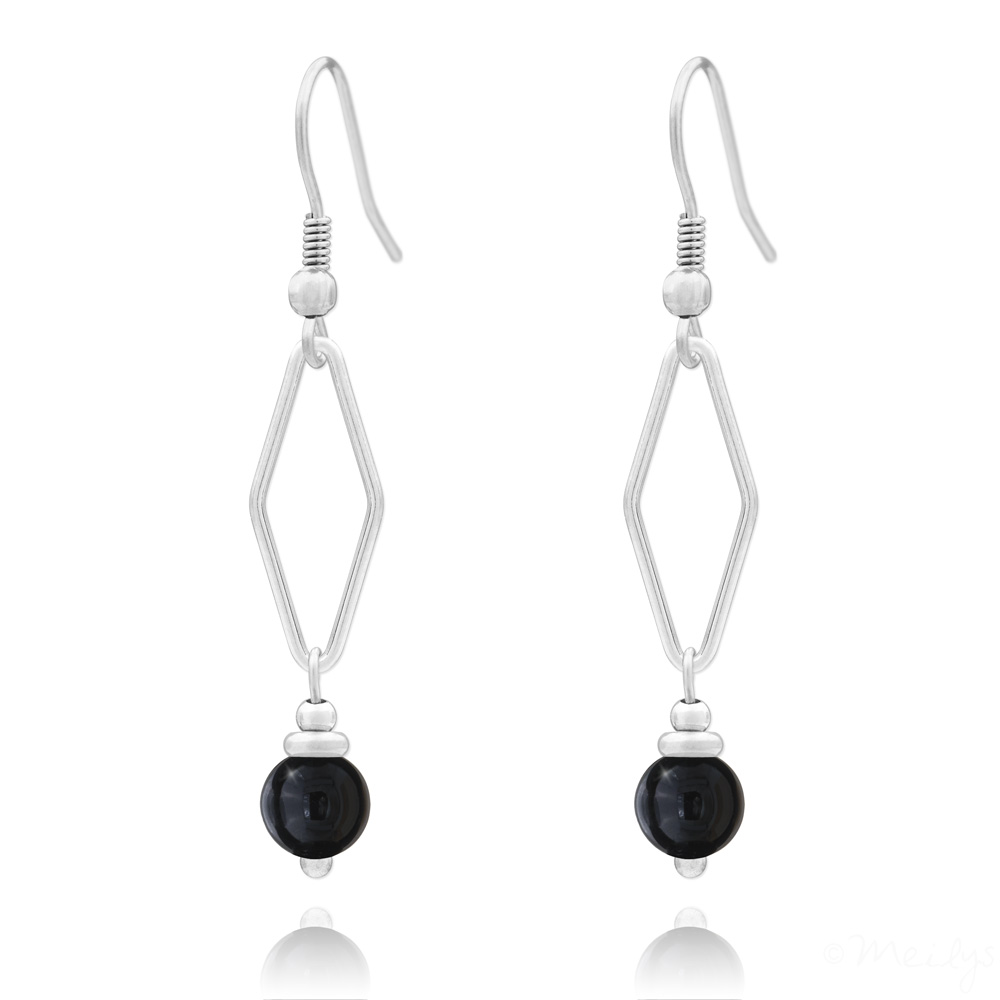Boucles d’oreilles acier et onyx; fabriquées en France.
