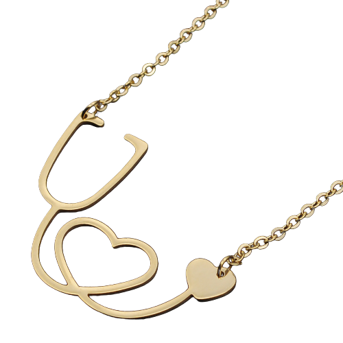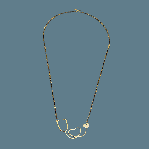 Un très beau collier en acier doré avec stéthoscope formant un coeur.