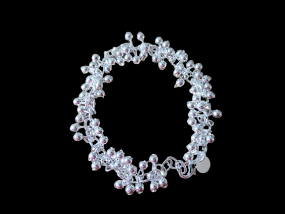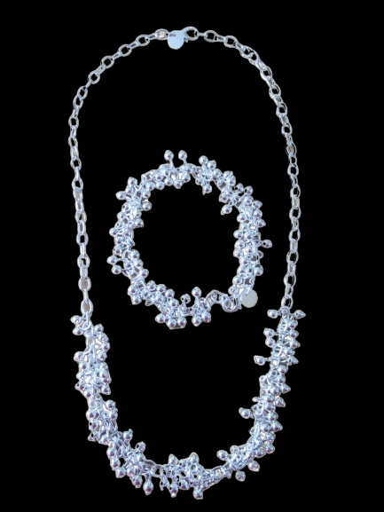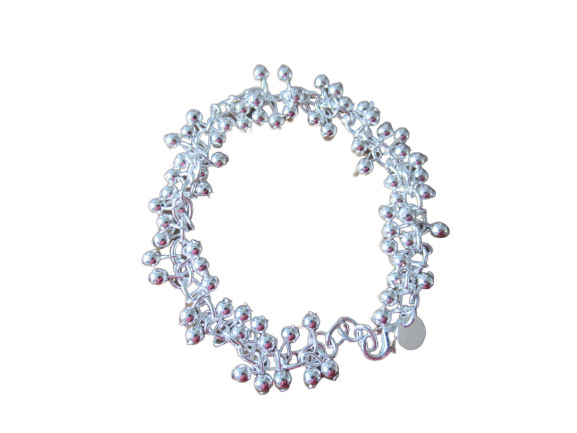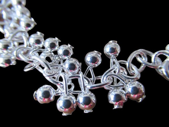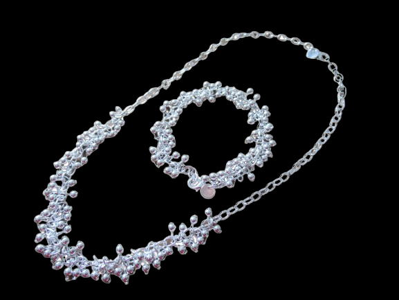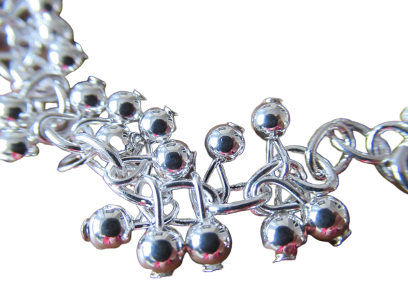 Parure, set, ensemble, bracelet et collier plaqué argent, boules.